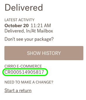 You can access additional shipping details to track your order by clicking the tracking number (see image below), which will take you to the Cirro website.